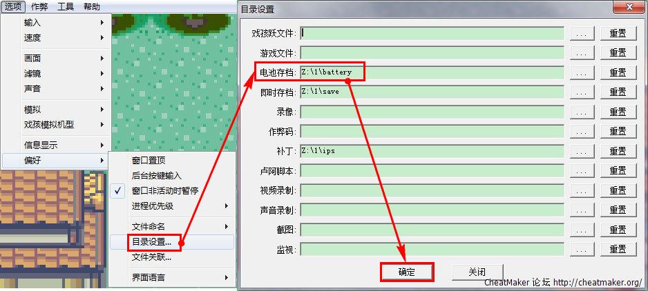 ㈠设置电池存档路径,可以运行任意游戏,会自动在模拟器目录内生成battary文件夹。然后关闭模拟器,将原来的存档(格式为sav)复制到此文件夹,启动模拟器运行游戏,测试存档是否能正确加载。