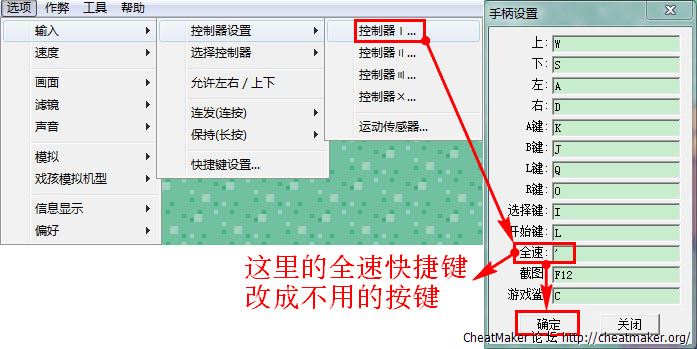 ㈡按自己喜好设置手柄,注意这里的[全速]用不到了,随便设置为不用的按键即可。