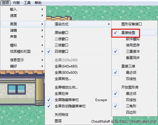三、将[渲染方式]设为[直接绘图](svn394版亦可设为[直接三维]),利用《自动热键》脚本,配合模拟器自身的限速功能,可实现较精准的控速,且加速方式仍为原来的全速单一快捷键,即按下快捷键加速、弹起快捷键恢复正常速。详见《模拟器加速太快解决方法》文档。