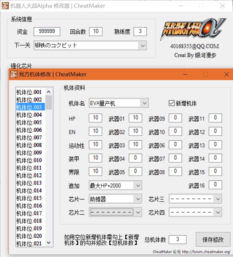 关于银河漫步做的超级机器人大战α修改器的小问题