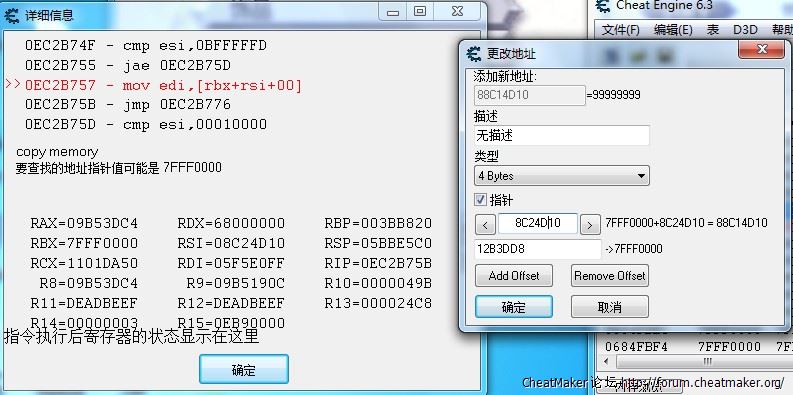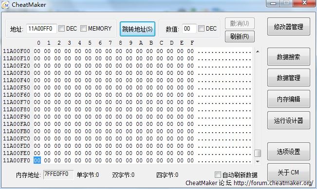在'内存编辑器'中只支持0x7fffffff大小了.但实际上修改器中的操作地址理论可以到0xffffffff的.但又因为CM目前不完全支持64程序的修改.在32位以外的地址将不被支持.