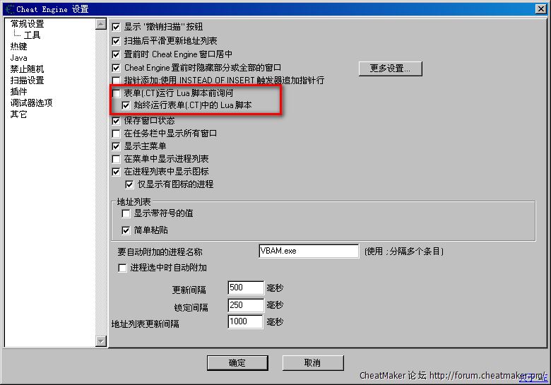 如果要运行DeSmuME 后CE自动编辑内存区域,如图设置下CE,