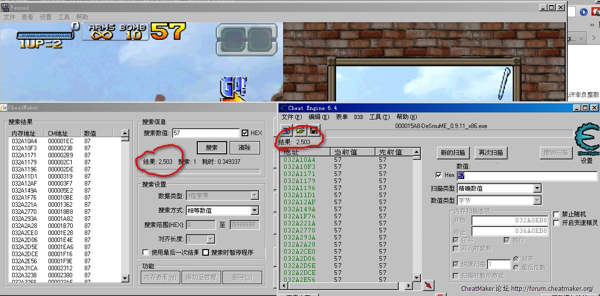 DeSmuME 0.9.11(x86)的PC内存区域通过ArtMoney可得知是固定的032A0EB8--036A0EB8