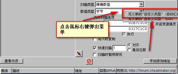 为什么在CE界面上点击了鼠标右键并没有弹出菜单“定义新的自定义类型(自动汇编)”选项啊? jiqigou 发表于 11/9/2015 7:48:52 PM  |