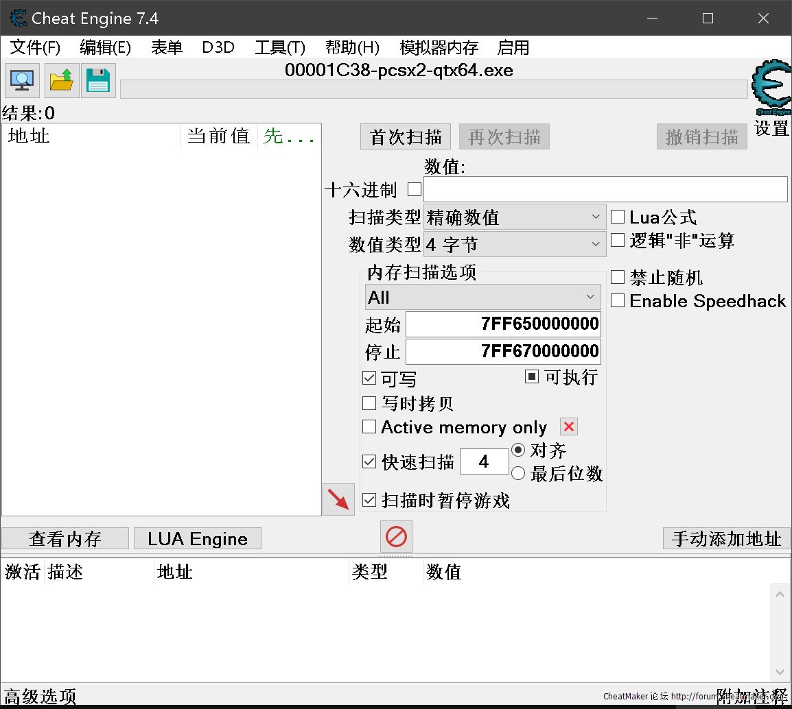 LUA控制台输出零地址和PCSX2 1.7的基地址