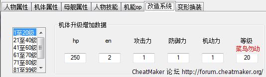根据g世纪世界的静态资料,机体适应性的修改: