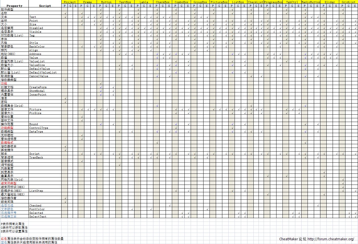 1.80beta版本的脚本功能大大增加. 这里展示所有控件对应的所有属性与脚本.供设计修改器时参考.
