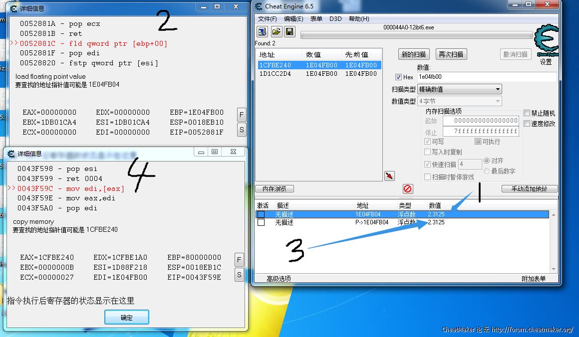 (一)无法找到基质,按照逐步搜索是什么访问指针地址的思想最后会发现是1cfbe240这个地址自己访问了自己,而且也搜索不到包含1cfbe240的地址 找基址失败 (二)尝试用人造指针也失败 我仿造ce第七课人造指针的课程自己写了一个脚本 但是一运行游戏就崩溃。