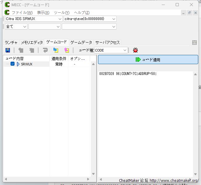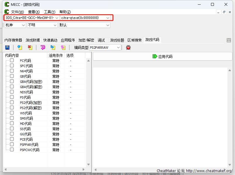 这块应该是识别了吧 然后我建个3DS 编码类型选择CODE 复制粘贴代码 在右侧里 应用代码 提示格式不对