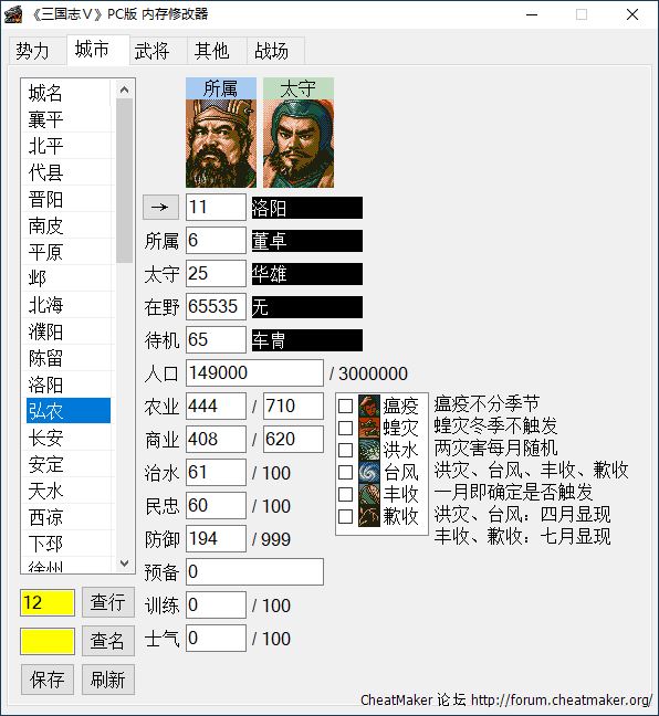 【Win】《三国志Ⅴ》简中视窗版 参数编辑器+内存修改器