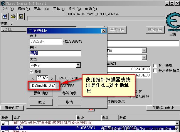 游戏HP之类的PC内存地址 - 游戏HP之类真正的偏移值 = 零地址。输入CE的"开始"编辑框。