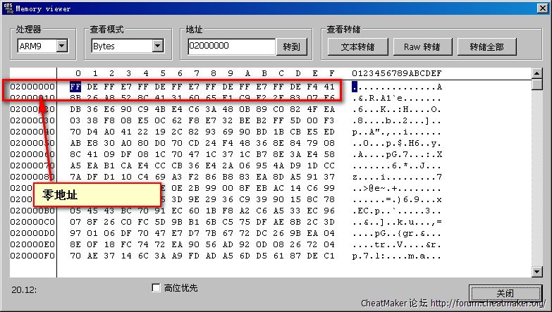 零地址 + 数据长度 = 终止地址。输入CE的“停止”编辑框。( DeSmuME 02000000-023FFFFF 相当于 4Mb)