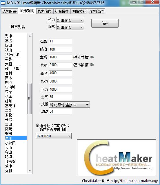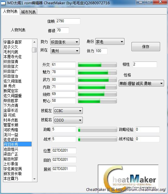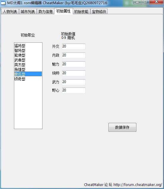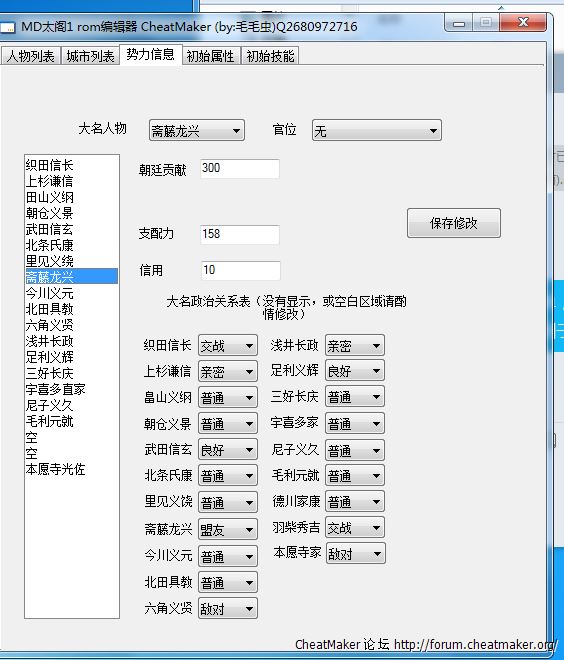 9.增加大名势力关系修改,贡献度修改10.初始属性,和技能修改