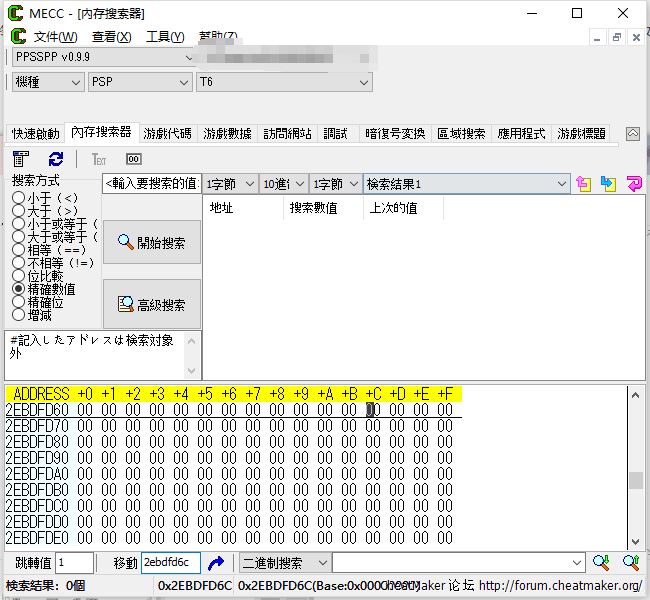 如图我想要自己添加金手指代码,点击按钮没反应,前年不知道怎么弄好过,现在想不起来了,真是蛋疼。当时想改造一个PSP带偏移的金手指码,发现MECC支持直接复制粘贴金手指。