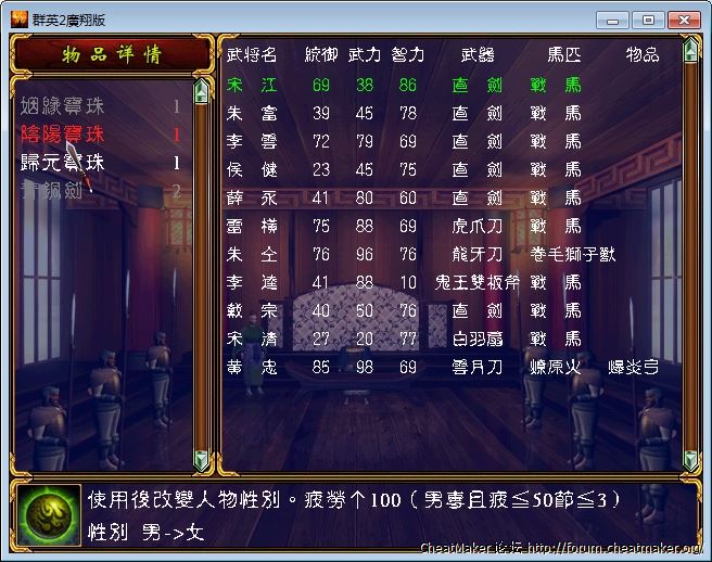 修改器主界面,武将列表可以随剧本不同进行刷新,并可查询修改武将,武将名可修改(不能超5个汉字)