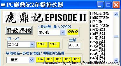 Thanks for the savegame editor for 鹿鼎記二.