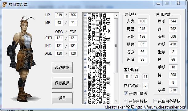 2.还是希望能改进TextBox控件, 当值大于某个特定值后, 通过运算其显示为负数, 如图2的AGILITY为250, 游戏中实际为-6, 这个游戏中正数的最大值只到127, 相信这类游戏有不少, 我上次遇到的是SS的光明力量系列