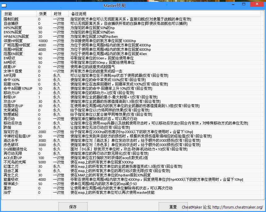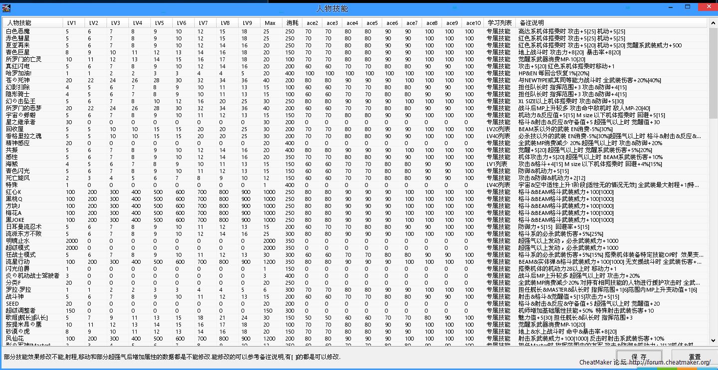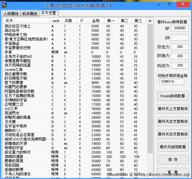感谢楼主更新,不过发现有几个机体没有武器数据。比如剑装灾呃高达和原创系初期的母舰运输要塞。目前发现这两个机体没有武器数据,无法修改