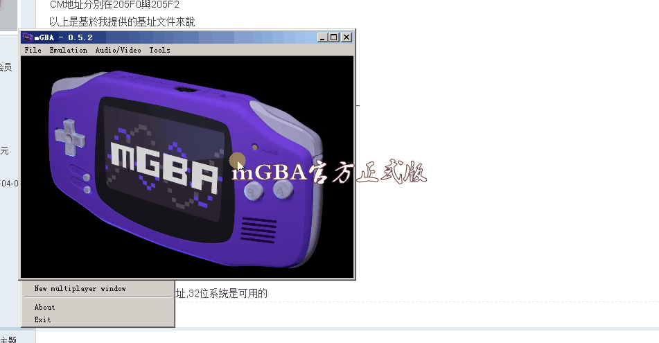最後mGBA 0.5.2的基址我是從您的跟帖中直接引用的