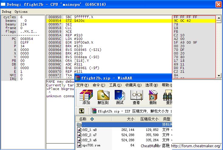 最后想修改到mame模拟的街机版,又发现用winhex打开ROM文件,找不到DEBUG相同地址的内存值,是不是需要合并文件才能看到或加密了?
