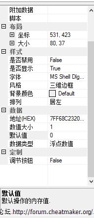 回复 6楼银河漫步的帖子求问我已经得到了这些数据的地址,然后我把地址写进textbox了,那个数值大小和默认值怎么填啊,这个是浮点数,不知道地址直接填CE的这个对不对,大神求教!这个是ce里弄出来的文本:<?xml version="1.0" encoding="utf-8"?><CheatTable>