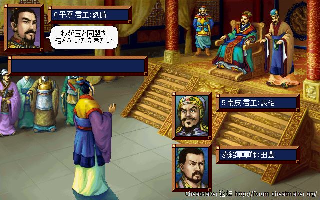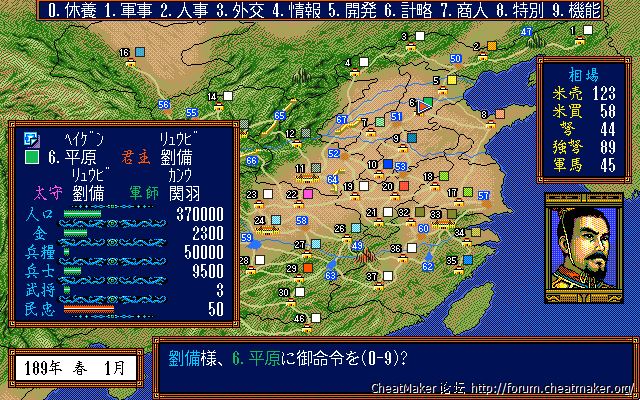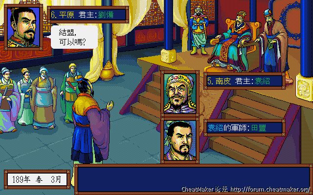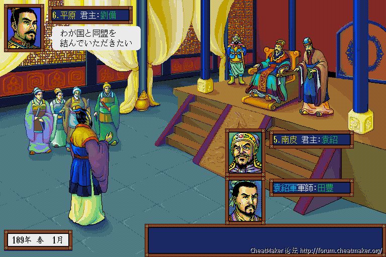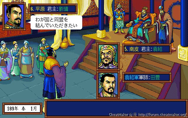 头像表现力上,8色的头像优化得如此之好,使得色彩显得很艳丽,甚至是后面的三国志4、5都比不上的效果,也就三国志英杰传要做得更好,同样是8色,英杰传那优化得简直出神入化。