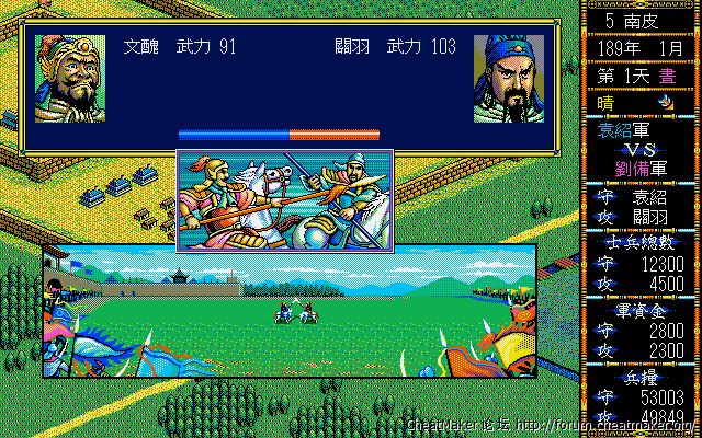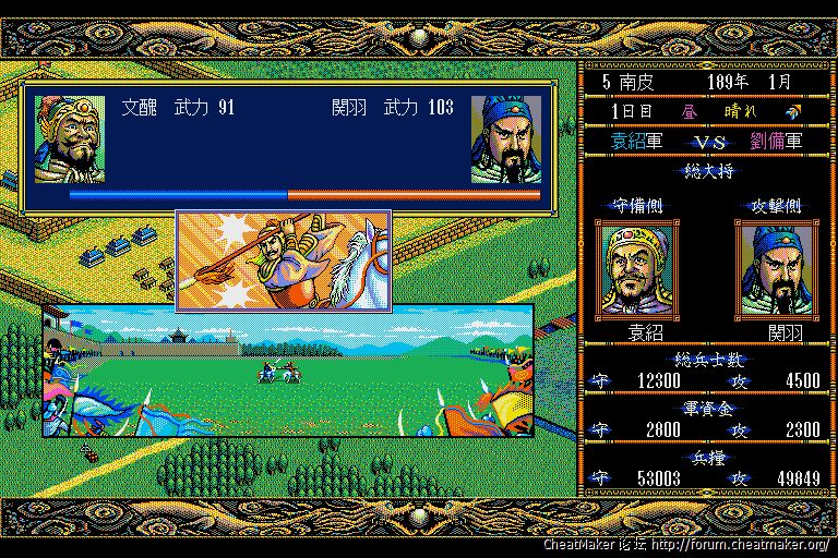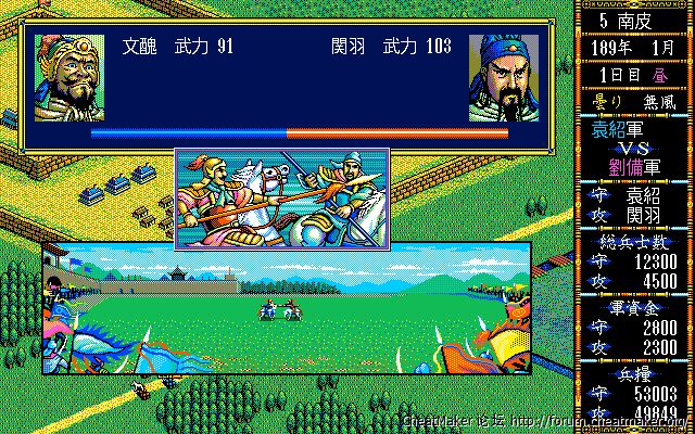 和日文DOSV版的三国3几乎没有区别,连分辨率都是相同的。不过细看的话PC98的画面鲜艳度和明亮度是要优于DOS的,不过这可能得益于模拟器本身的优化。