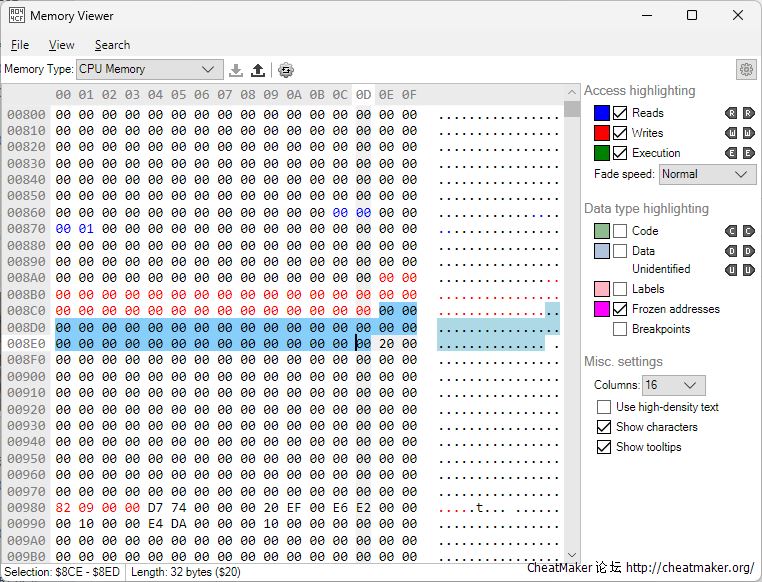 以32個紅色數值00和黑色數值20之間的區塊為可能地址