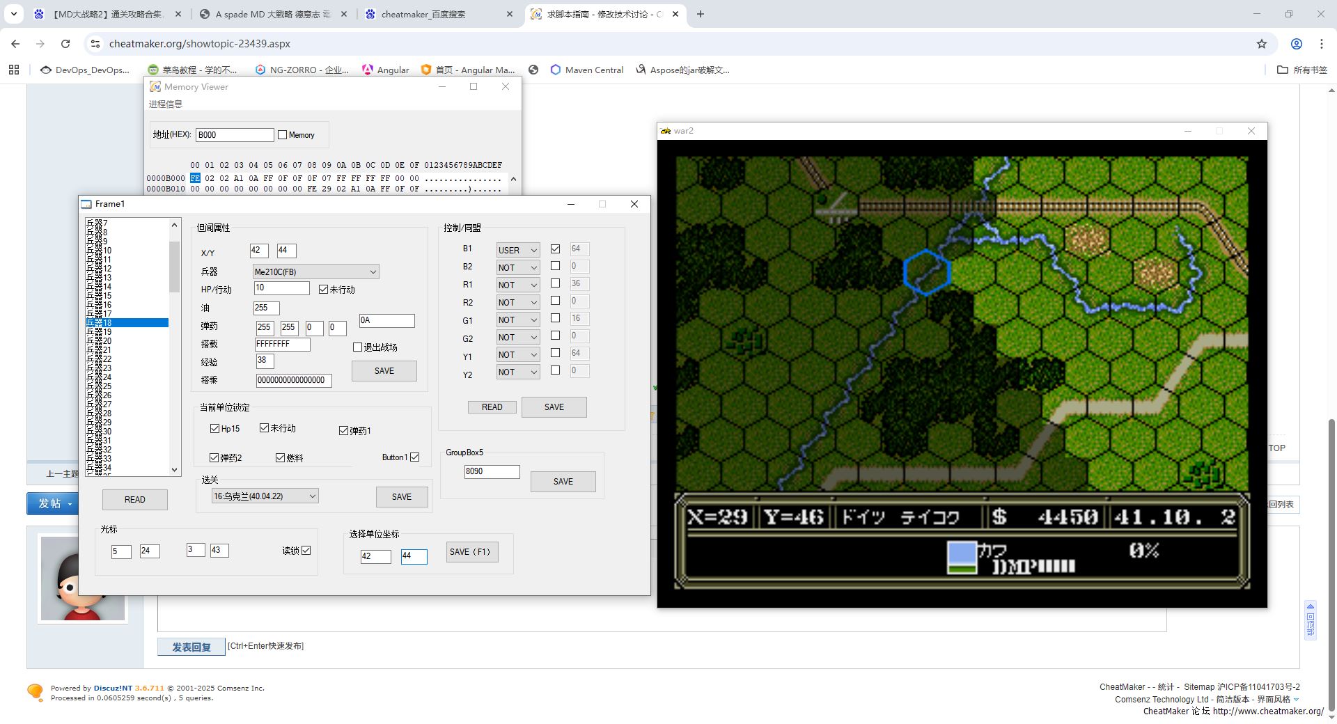 最近玩MD大战略2,想用快捷键把选定单位传送到光标位置,现在的问题是,光标X,Y分别用两个地址表示,我的期望