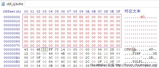 用HxD打开.bcfnt文件,在文件头部添加80个字节的“shared_font_header”