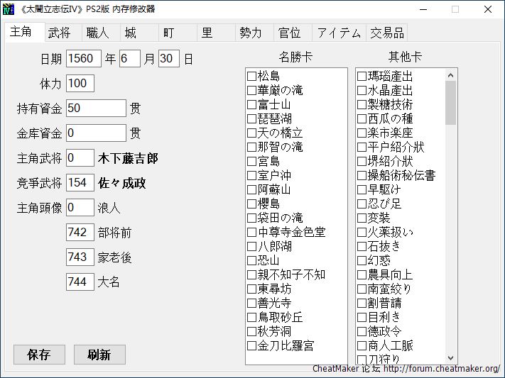 【PS2】《太阁立志传4》内存修改器