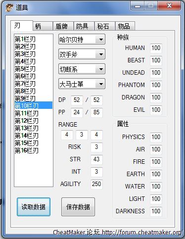 2.还是希望能改进TextBox控件,  当值大于某个特定值后, 通过运算其显示为负数, 如图2的AGILITY为250, 游戏中实际为-6, 这个游戏中正数的最大值只到127, 相信这类游戏有不少, 我上次遇到的是SS的光明力量系列
