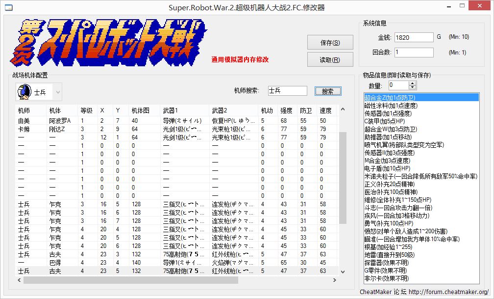 《第二次机器人大战》修改器.[2014.01.14]更新