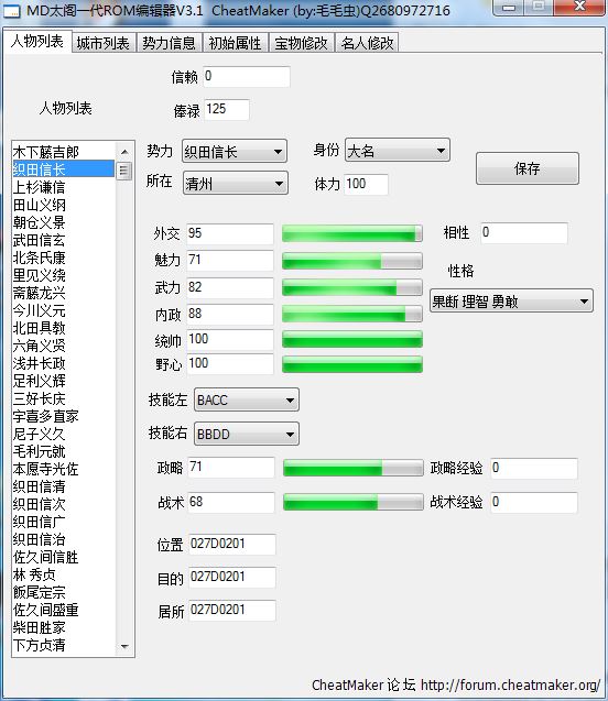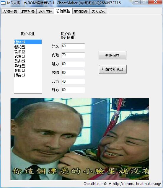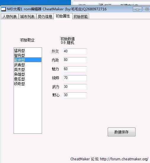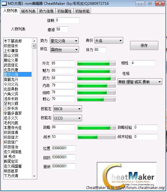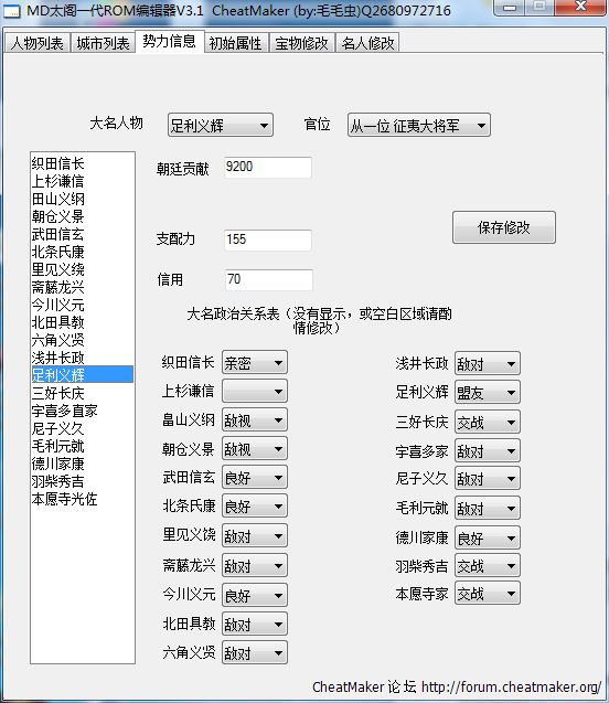 9.增加大名势力关系修改,贡献度修改10.初始属性,和技能修改