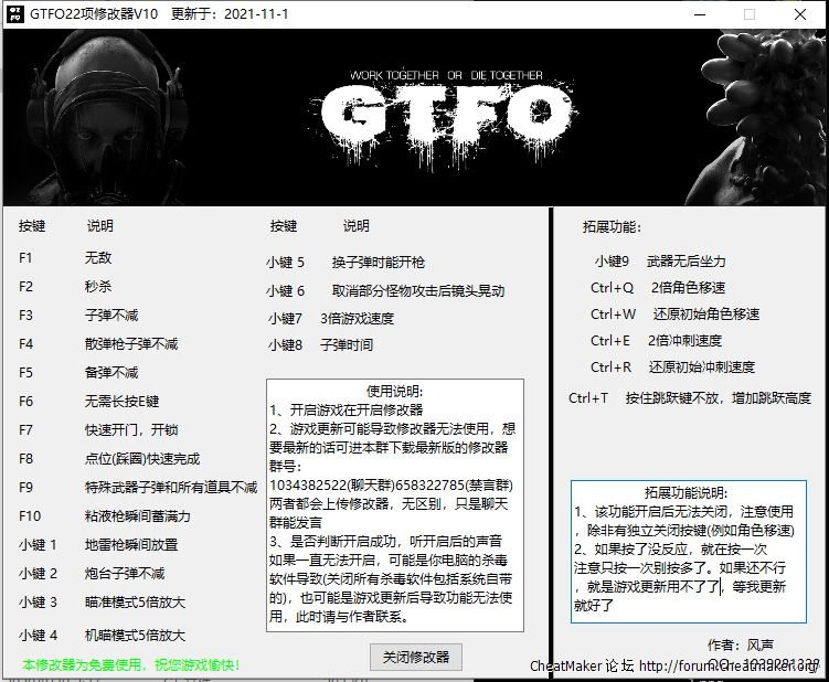 GTFO22项修改器V10界面截图.png