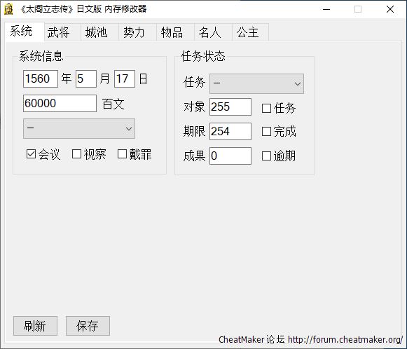 修改内容: 1、初始选类型随机能力值必定最大 2、当城主前可正常晋升到家老、宿老 3、游戏结束年限改为1599年 4、居所、城内武将可单挑 5、军团内武将也可单挑 6、自家武将也可单挑 7、杀人不降低魅力 8、部下买枪不加魅力 9、谒见不会被拒绝 10、每日可重复谒见 11、申请工作无视身份、日期 12、无视能力申请暗杀工作 13、学剑术无视战术等级、师父体力 14、学茶道、艺术不会失败 15、马店、枪支店打工必加技能 16、旅馆住宿必有艳遇 17、NPC快速刷满亲密 18、西班牙人必卖真枪 19、制作枪支无视等待 20、艺术品委托制作无视亲密无需等待 21、无视身份提拔浪人 22、无视身份谋略武将且必定成功 23、每日可重复谋略 24、无视身份外交且胁迫必定成功 25、本国城池物资调配权 26、每日可重复内政 27、所有城池可修建、筑城 28、修建城池不会失败 29、筑城无视城防、资金 30、新田开发随便选人效果最佳 31、新田开发无视等待 32、战斗使用策略必定成功 33、玩家部队无限行动(等待结束) 34、城主会议不限制任务单次 35、日文版变更身份带兵算法: 步兵头 2000 物头 3000 目付 4000 奉行 5000 中老 6000 家老 7000 宿老 8000 大名 8000 微信扫描签名二维码关注公众号 在历史文章里¥1