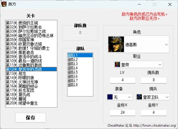 之前已有2种MD梦幻模拟战1静态修改器,但都十分不完善,近期兰斯洛特提供编码、地址、图片,于是本人重新制作。
