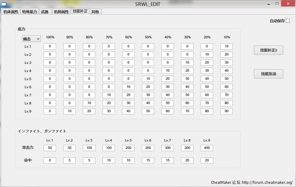 L里面的防御技能发动率居然是通用的,改了一个一群人跟着变。而且多形象人物用的数据也是同一个,想给爆气状态加属性是没辙了