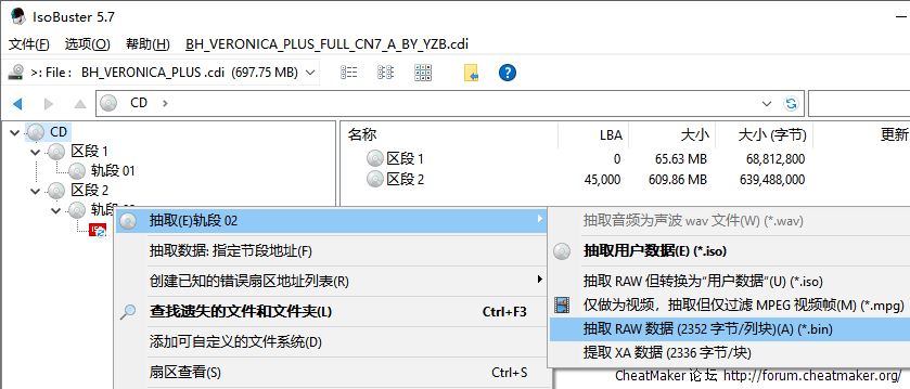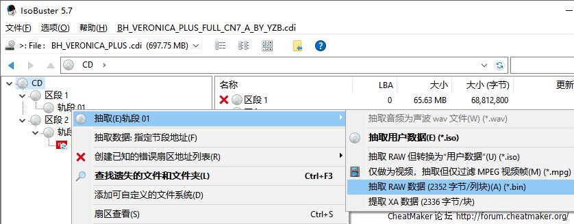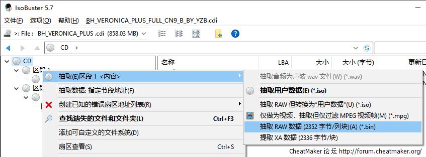 抽取 RAW 数据 (2352 字节/列块)(A) (*.bin)