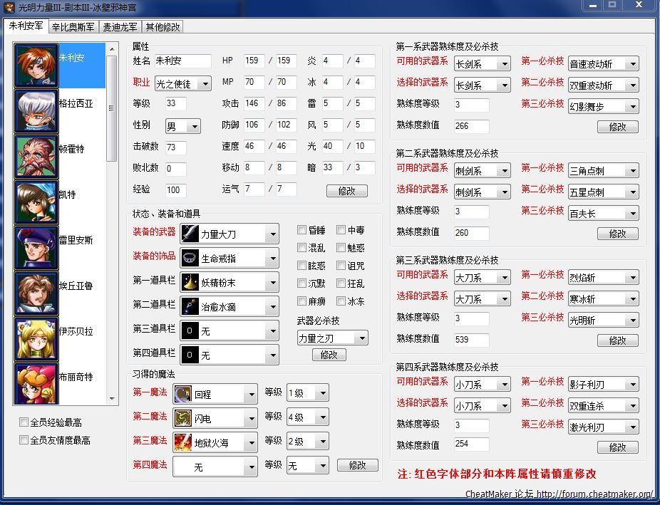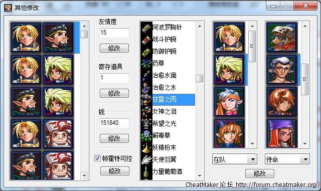 再仔细试了下,发现以前的修改器只能修改陈志东汉化的HP和MP,别的都不能改