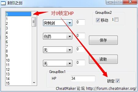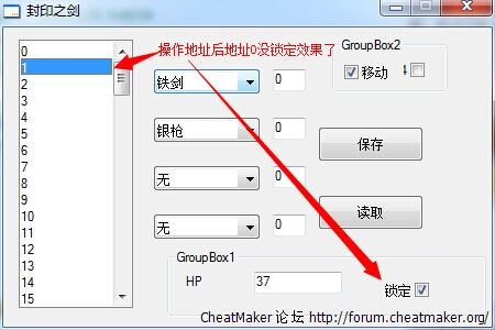 在0用了锁定保存,在ListBox里选了1,锁定保存则对目前1的HP锁定,而0的锁定保存无效果了,就是锁定保存只对当前所选地址锁定