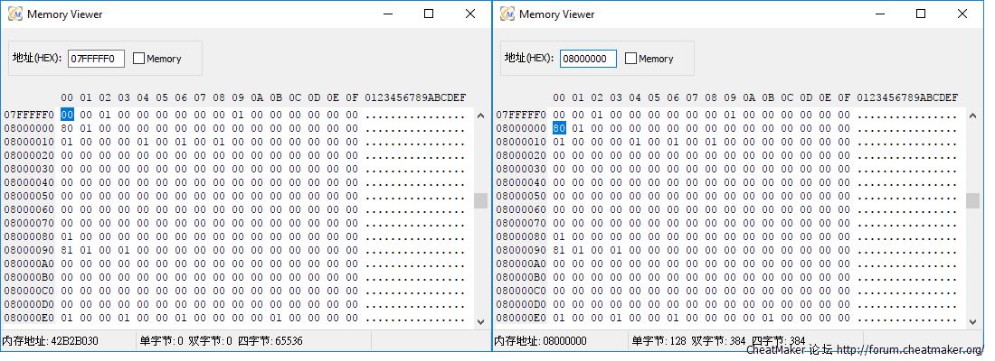 基址的總數據大小超過8000000會無法在內存編輯中正確顯示內存地址
