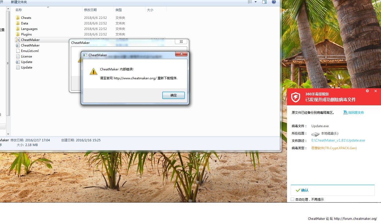 这是由于你的杀毒软件自动判定把CM文件夹的一个程序禁用了所以错误
