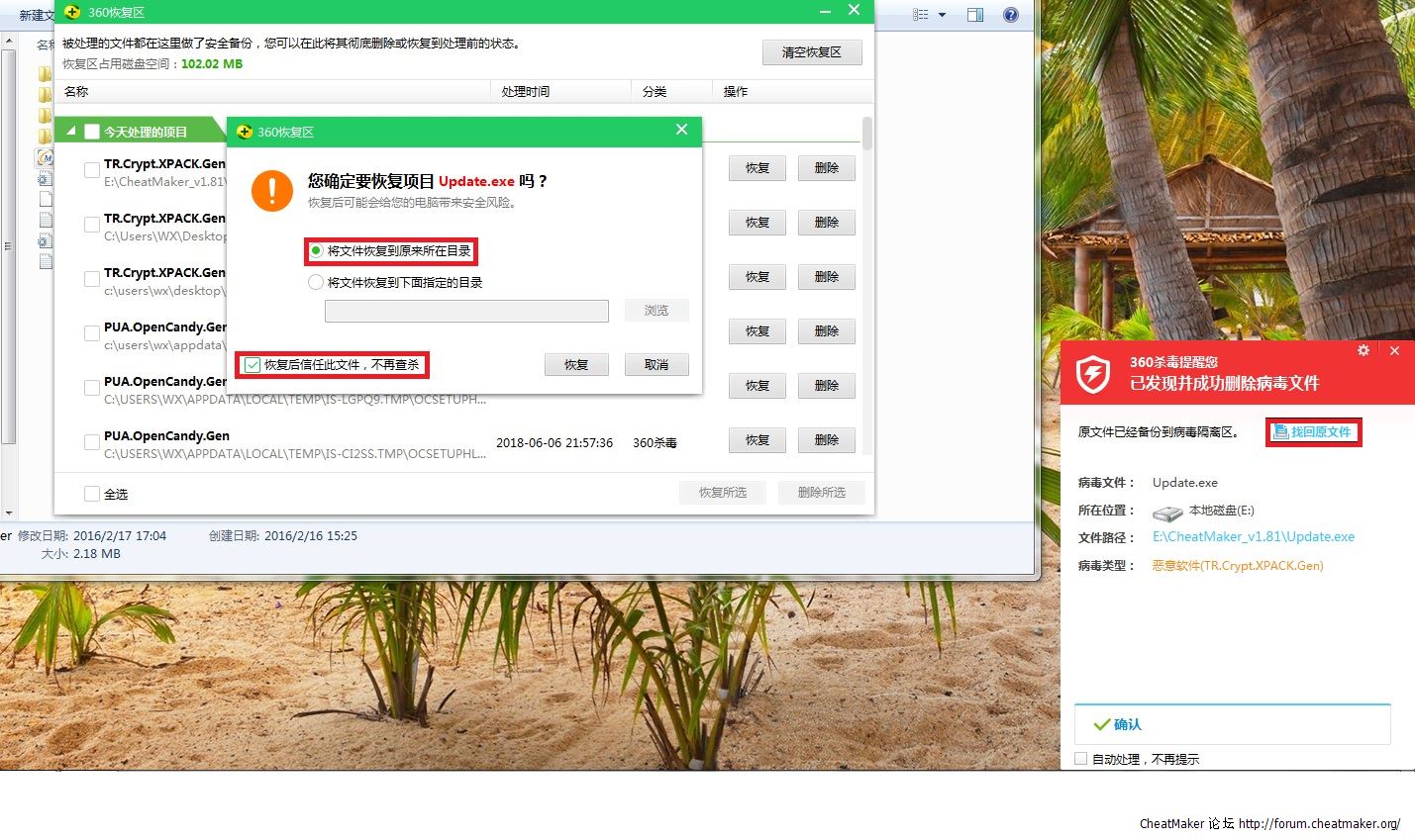 恢复文件,一定要找回来。只添加白名单文件还是不在。