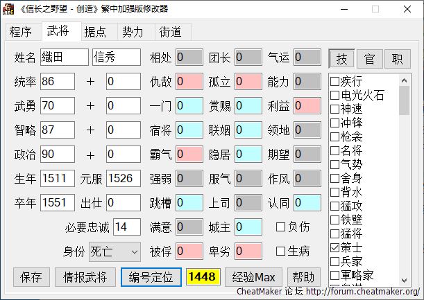 【Win】《信长之野望 - 创造 加强版》内存修改器