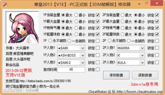 拳皇13-PC正式版-3DM版-V1E版内存修改器