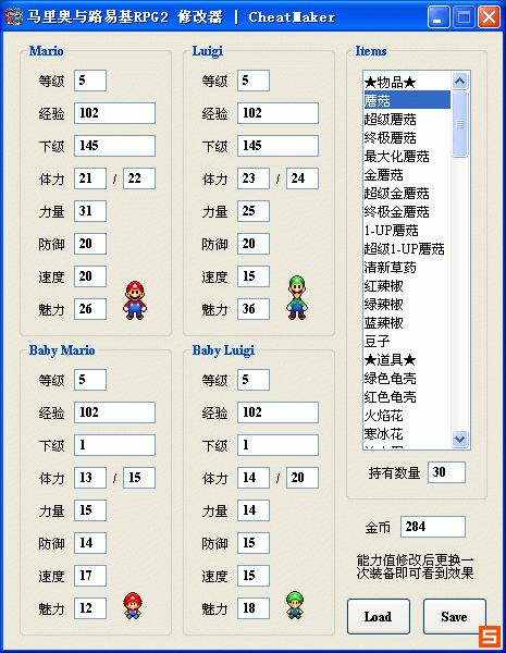 《馬利歐與路易RPG2》修改器 For DeSmuME